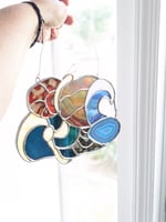 The Tide Pool was made using the Tiffany-method of copper foil and solder. I selected various colors of Pennsylvania-based Youghiogheny glass, which is hand crafted to capture the essence of nature, and water glasses.